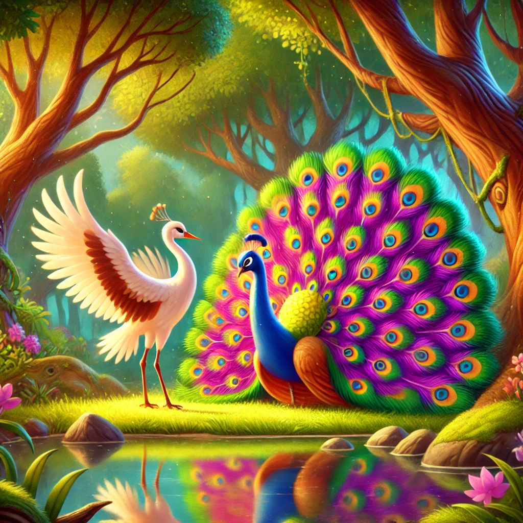 - Introduce the story The Crane and the Peacock: